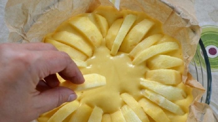 - Дольки яблок уложите в тесто, в произвольном порядке.